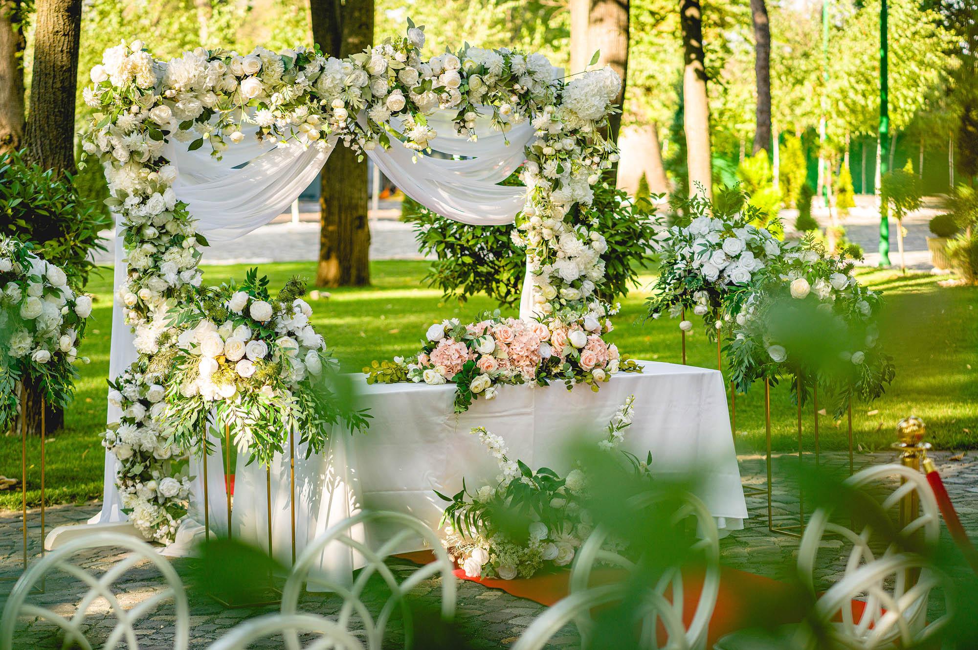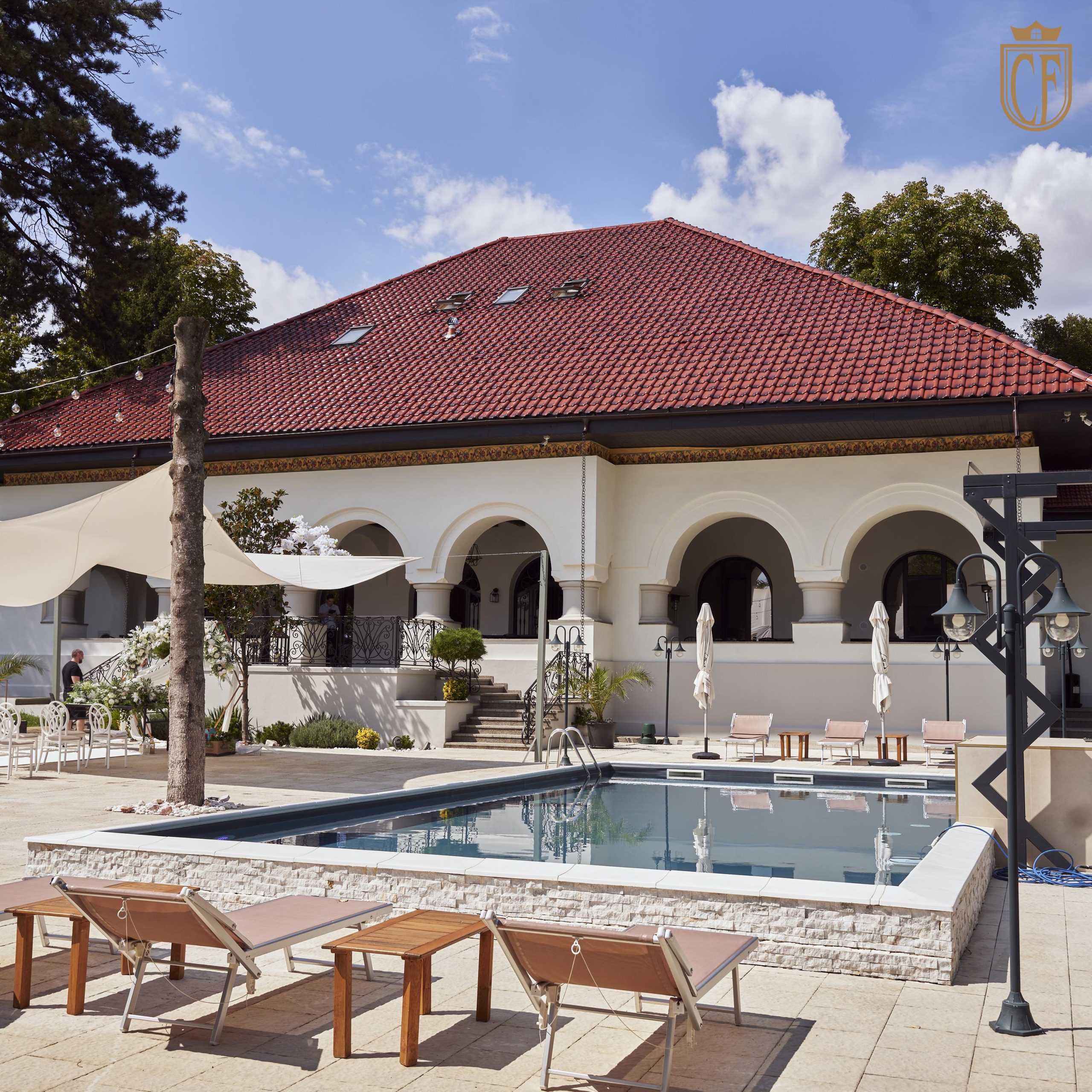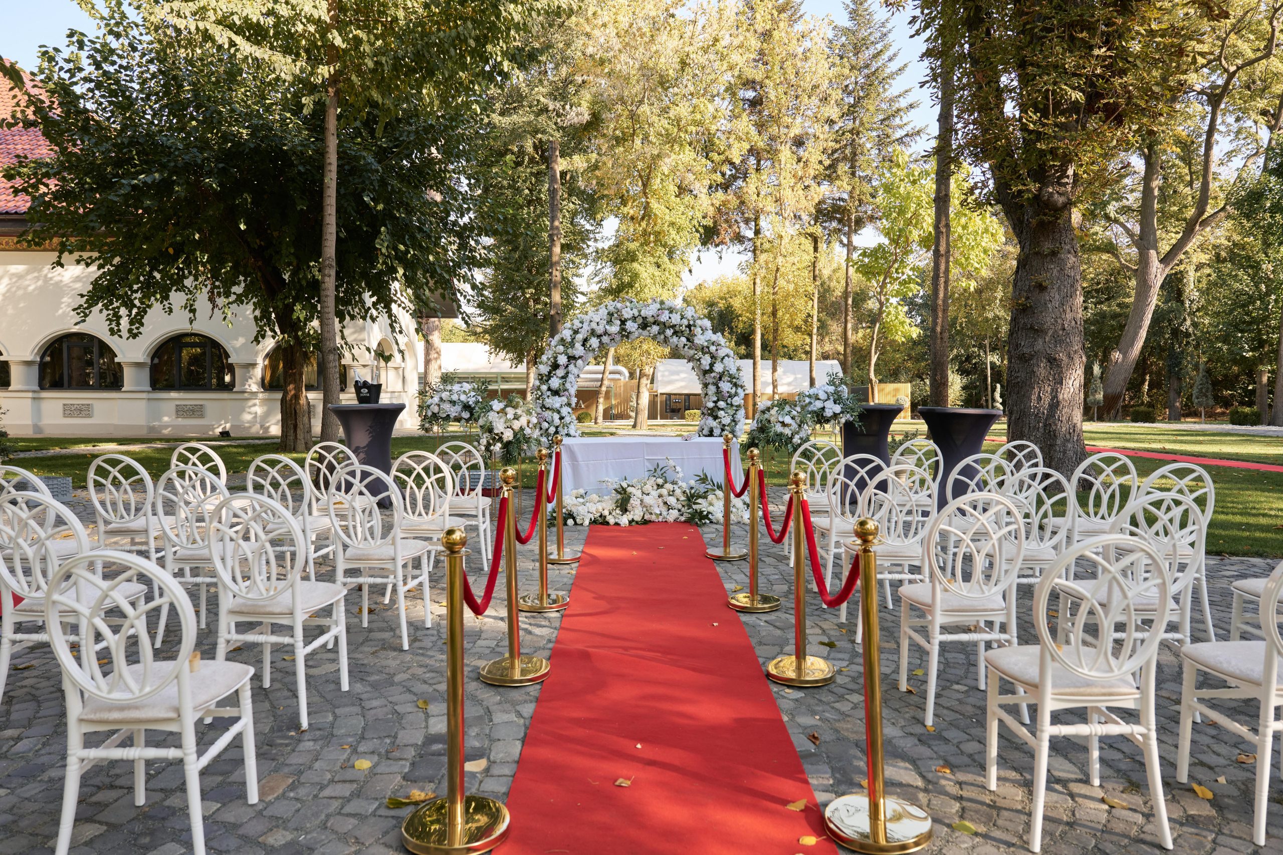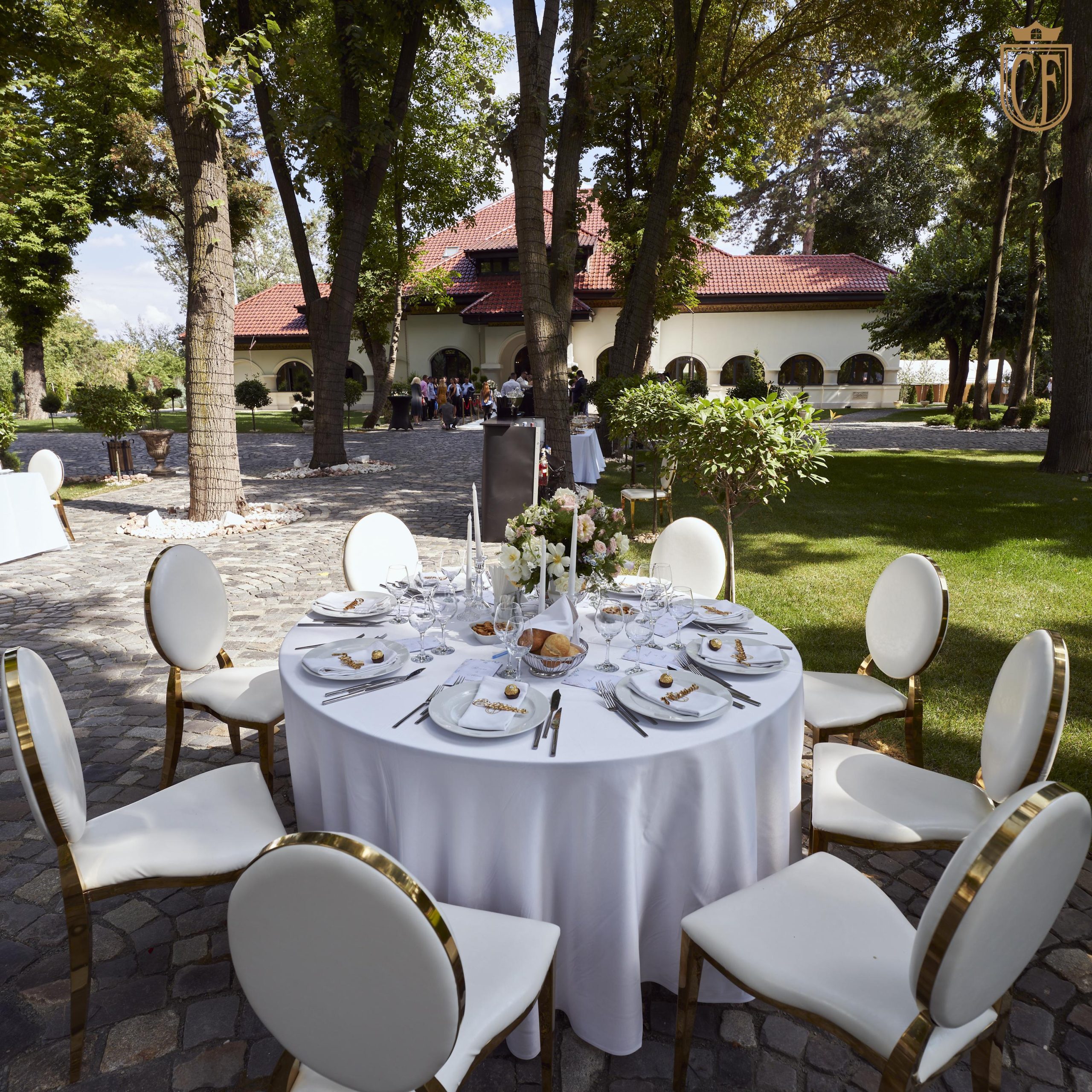 Sugestie: Rochiile vaporoase, florile de vară și un photo corner în umbra arborilor creează o atmosferă idilică. Recomandat pentru garden party-uri, petreceri ale burlacilor, baluri și majorate pentru adolescenți și tineri, aniversări, pool party-uri after wedding, botezuri sau cine festive la apus.